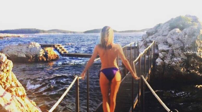 Duda, kako je zove od milja, pozirala je pjevaču na hvarskoj plaži. Pjevačeva supruga na sebi je imala samo plave kupaće gaće, a gole grudi okrenula je prema pučini.