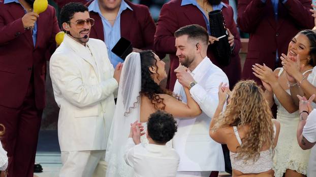 Ljubav je bila u zraku tijekom epskog nastupa Bad Bunnyja u poluvremenu Super Bowla. Mladenka i mladoženja koji su se pojavili tijekom performansa doista su se vjenčali na terenu stadiona Levi's u Santa Clari u Kaliforniji, kako potvrđuje Page Six. Par je čak prethodno pozvao pjevača na svoje vjenčanje, no on je imao bolju ideju.