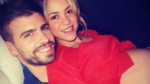 Budući roditelji, kolumbijska pjevačica i njezin dečko Gerard Pique, pozirali su s osmijehom na licu ležeći jedno pokraj drugog, a u prvom planu je njezin trbuh