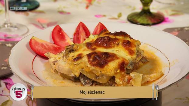 Zatim je pripremala glavno jelo 'Moj složenac', musaku s dodatkom jaja i gljiva, a na kraju je pripremila predjelo - taquitose, to jest, flaute, rolice od tortilje s piletinom uz koje je pripremila i umak od grčkog jogurta i krastavaca.