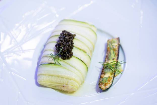 Budući da je tema tjedna luksuz, ni zadani tanjur neće biti nimalo milostiv. Kandidati će pripremati filet ikejime brancina zamotan u tanke tikvice, punjen ribljom farčom od yuzu sezama i beluga kavijara.