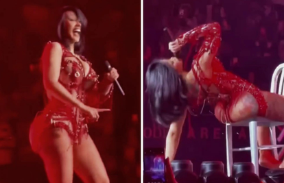 Cardi B napravila je show na koncertu u Las Vegasu u petak. Sjela je na naslon stolca kako bi istaknula svoje obline, a dok se spuštala on joj se izmaknuo i pala je na pod. Američka reperica nasmijala se na svoj pad i nastavila plesati kao da je sve bio dio nastupa. Brzo je ustala i rekla publici: 'To nisam bila ja, to je bila vlada'.