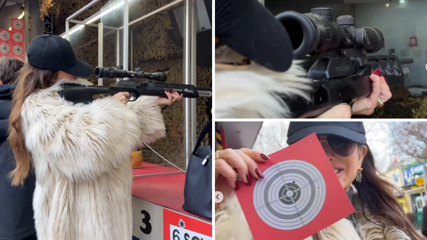 Snimka je otkrila da je ipak bila prilično precizna, pogodivši blizu centra mete, što je i sama ponosno pokazala. Na jednoj od idućih fotografija Seve je otkrila kako joj se odlijepio đon čizme, što je odmah potaklo smiješne komentare na poveznicu s pucanjem.