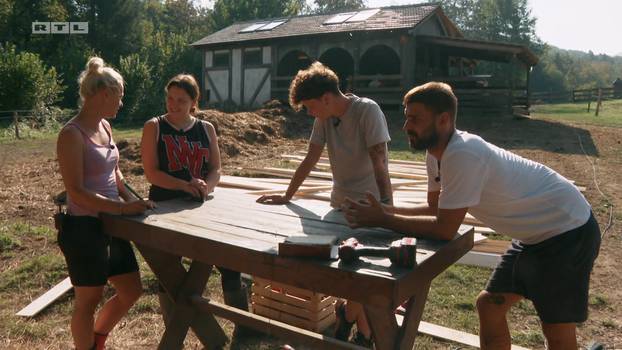Radno je jutro svanulo na 'Farmi', obitelj iz štale vrijedno radi na izradi pčelinjaka. Radili su i tijekom noći i pokušavaju stisnuti da što prije završe zadatak. "Umorni smo, ali moramo završiti pa što bude", otkrila je Doroteja. Vrijedni su i iz narančaste obitelji - bar oni koji su ustali iz kreveta. Vođa Ivan s Dejanom se rano prihvatio posla. "Odmah pripremam alat, sve mjerim što ćemo raditi, bitna mi je pobjeda i dajem sve za pobjedu", otkrio je Dejan.