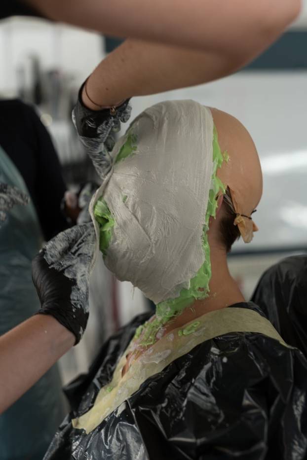 - Uzimanje odljeva lica ključno je za izradu protetike po mjeri svakog kandidata ponaosob. Bez tog dijela nema daljnjeg procesa. Uzimanjem odljeva stvaramo pozitiv lica kandidata ili njegovu bistu u 1:1 dimenzijama i po takvoj bazi kiparimo te stvaramo transformacije u željenom smjeru. Samo uzimanje odljeva traje oko 45 minuta, radi se samo jednom i to na početku sezone i većina kandidata nema problem s kompletnim prekrivanjem lica gdje ostavljamo samo nosnice slobodne za disanje - objašnjava voditeljica sektora šminke Martina Novaković čiji se tim sastoji od 20 maskera i frizera koji naoružani zalihom od 300-tinjak perika, 400-tinjak umjetnih trepavica i 40-ak setova umjetnih noktiju spremno prihvaćaju i one najzahtjevnije transformacije.