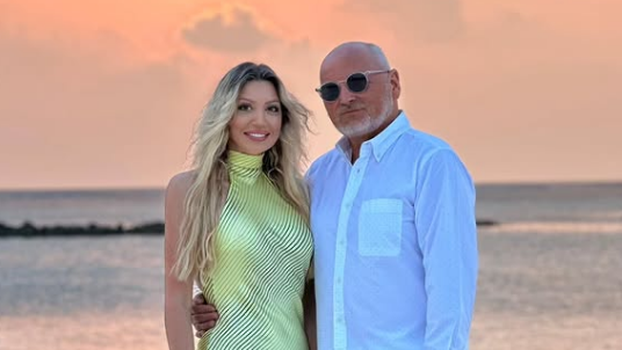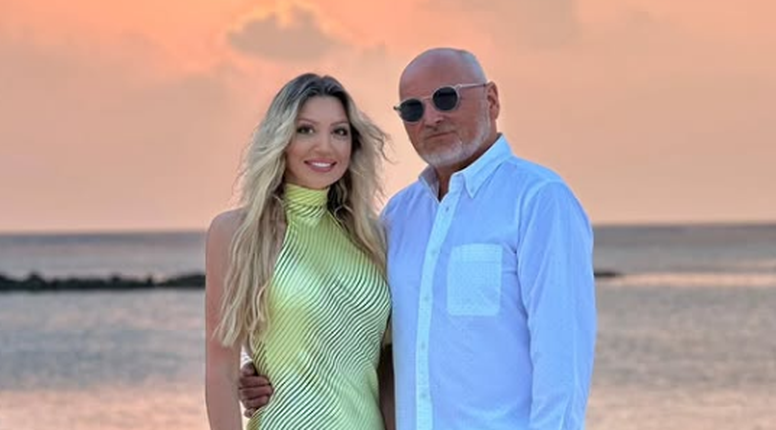 Na fotografiji Blanka i Zlatko Mateša poziraju na pješčanoj plaži u suton, a iza njih se prostire predivan prizor zalaska sunca. Blanka blista u elegantnoj, dugoj haljini boje limete koja prati liniju tijela, dok je njezin suprug odjeven u ležernu bijelu kombinaciju.