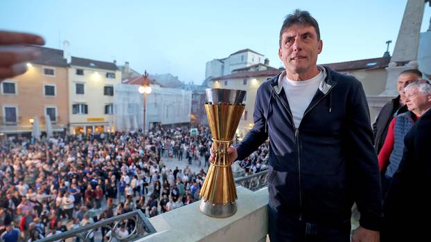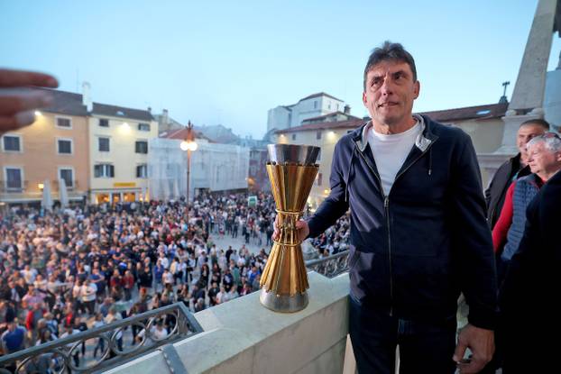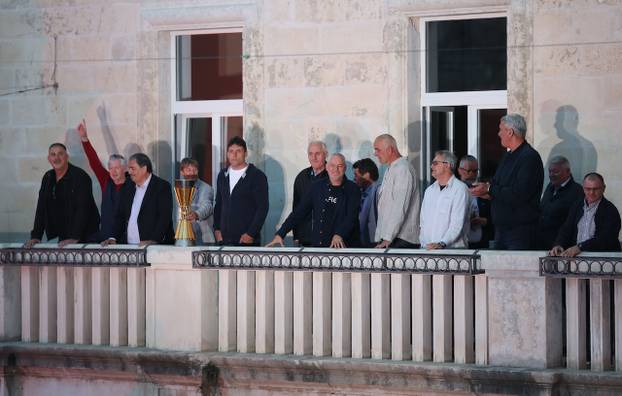 Komentari 0Vrhunac večeri dogodio se na balkonu gradske uprave, istom onom na kojem je prije 40 godina slavljen povijesni uspjeh. Gotovo cijela momčad popela se na balkon i podigla pehar