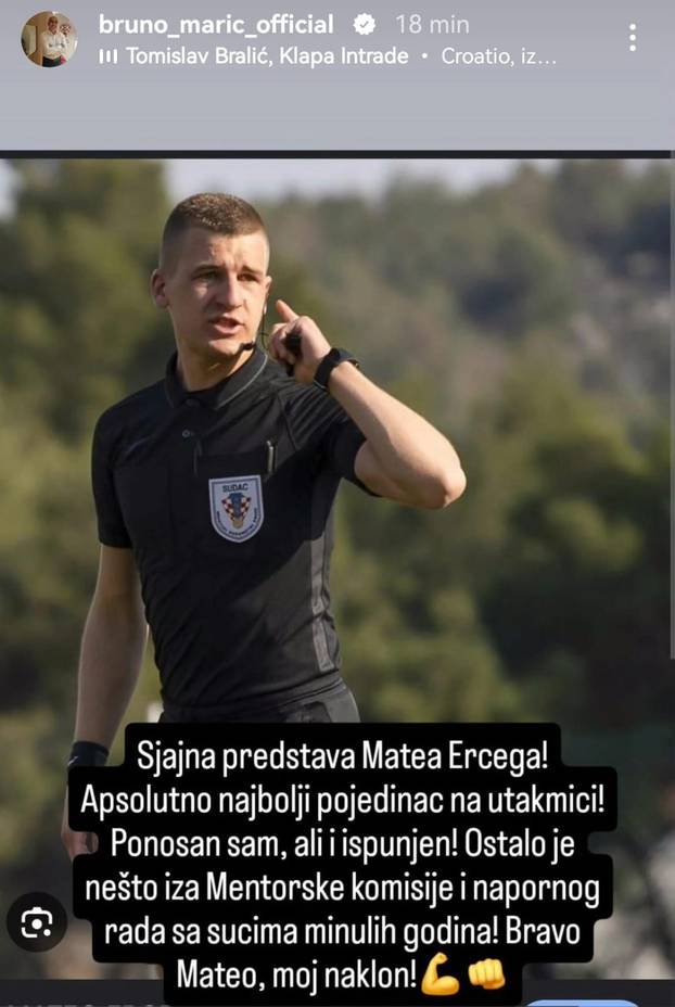 "Sjajna predstava Matea Ercega! Apsolutno najbolji pojedinac na utakmici! Ponosan sam, ali i ispunjen! Ostalo je nešto iza Mentorske komisije i napornog rada sa sucima minulih godina! Bravo Mateo, moj naklon!", napisao je Marić na Instagramu.