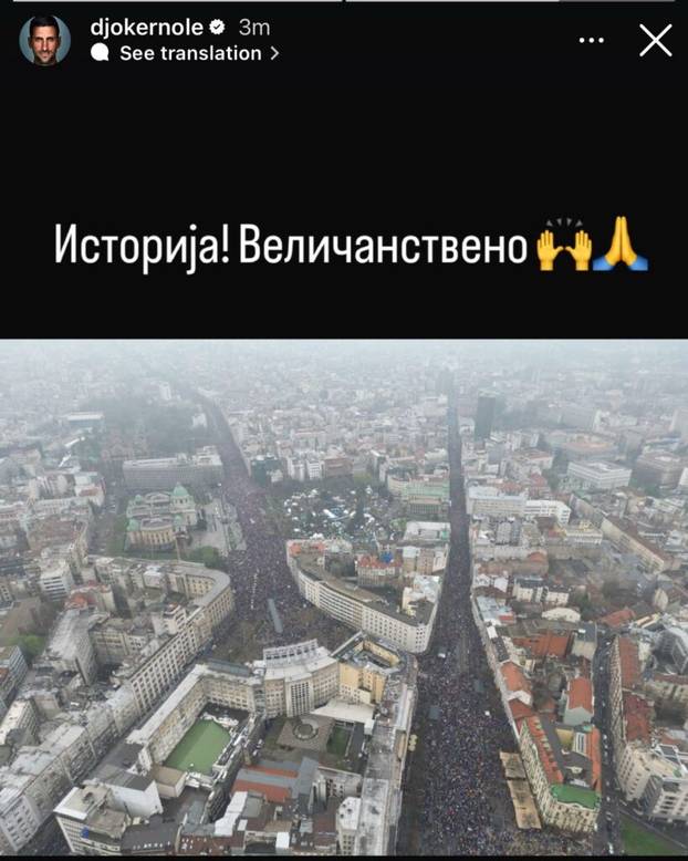Na Instagramu je podijelio dvije fotografije na kojima se vidi ogroman broj okupljenih ljudi na velikom prosvjedu "15. za 15.".