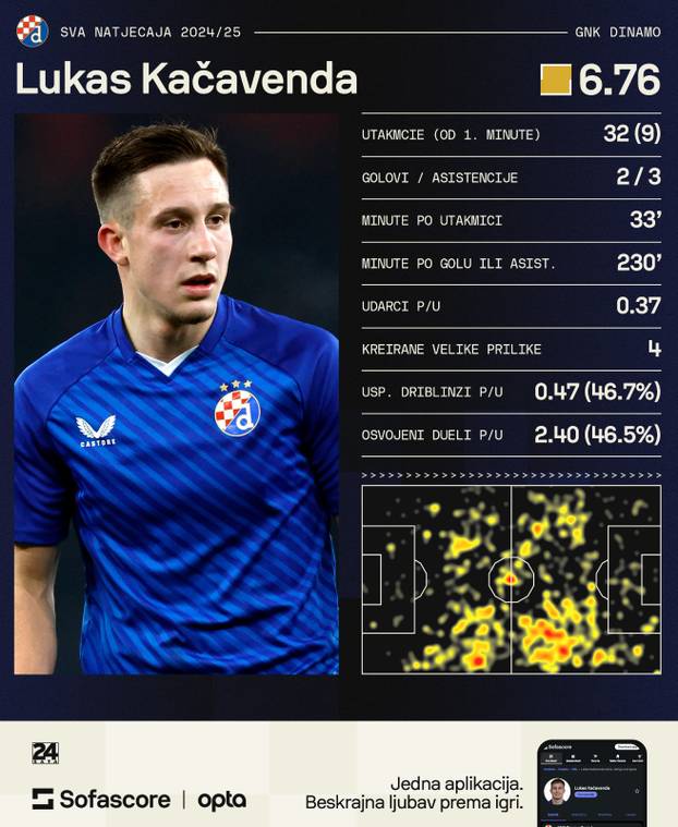 Lukas Kačavenda (22) trebao bi idućih dana napustiti Dinamo, doznaju 24sata. Mladi veznjak nije dobio željene minute prošle sezone, a sve je izvjesnije kako se niti pod vodstvom Marija Kovačevića neće izboriti za mjesto u početnoj postavi. I Kačavenda napušta Dinamo. Točnije, do kraja idućeg tjedna trebao bi finalizirati posudbu u LASK, a Austrijanci bi na kraju sezone imali i pravo otkupa.
