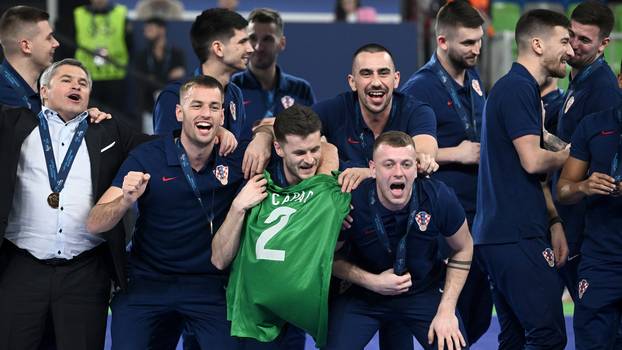 Hrvatska futsalska reprezentacija primila je brončane medalje na Europskom prvenstvu. Izabranici Marinka Mavrovića na svečanosti dodjele pojavili su se s dresom pokojnog Matije Capara