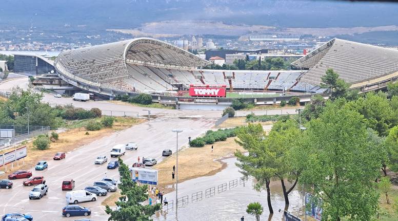 Poplavilo je mnogo uredskih prostorija unutar stadiona, trening dvorana, kao i bijeli te novinarski salon, a na dijelu stadiona nestalo je struje. Danas u 12 sati Hajduk je zakazao službenu konferenciju za medije i predstavljanje prvog pojačanja, no zbog poplave u prostorijama u kojima se takva događanja inače održavaju, ona je odgođena.