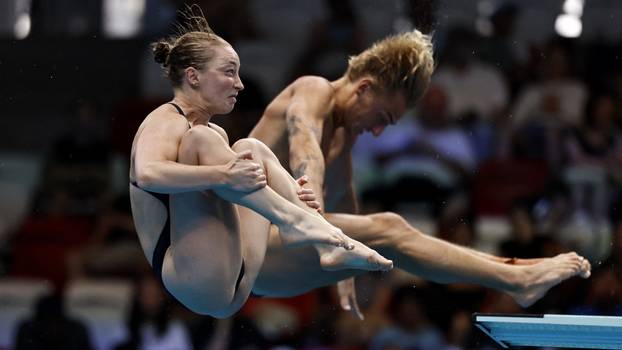 Talijani Chiara Pellacani i Matteo Santoro osvojili su naslov svjetskih prvaka u skokovima u vodu u disciplini mješoviti sinkronizirani skokovi s daske tri metra u Singapuru.