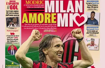 Luka Modrić apsolutno je zaludio cijelu Italiju. Partije kakve pruža s 40 godina su nevjerojatne, a u pobjedi Milana nad gradskim rivalom Interom (1-0) ponovo je bio jedan od najboljih na terenu. Tako je završio i na naslovnici ugledne Gazzette dello Sport koja se još jednom osvrnula na legendarnog hrvatskog kapetana. Uz njegovu sliku stoji naslov: "Milan, ljubavi moja".