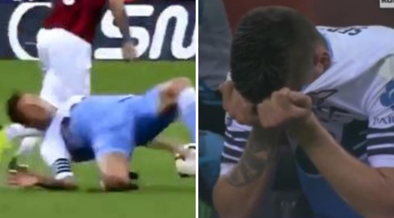 Jer čudo je kako mu koljeno u sekundi nije otišlo nakon ovog pada na San Siru već u 15. minuti uzvrata polufinala talijanskog Kupa s Milanom: