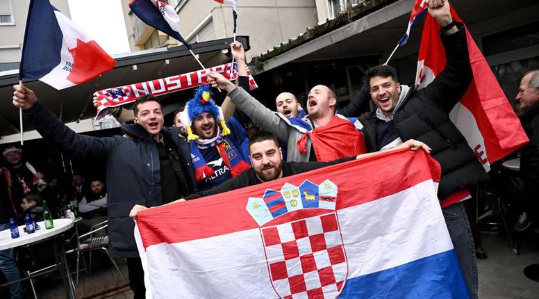 E njih je bilo sa svih krajeva Lijepe naše. Doslovno. Tako smo na tribinama vidjeli hrvatske zastave iz Knina, Imotskog, Osijeka, Petrinje, Oriovca, Pule, Šibenika, Siska, Dubrovnika, Kutine, Madžareva, Duge Rese, Nuštra, Zadra, Gospića..., tako da prostora za francuske zastave gotovo i da nije bilo. Zanimljivo je bilo gledati i naše navijače u hrvatskim dresovima.
