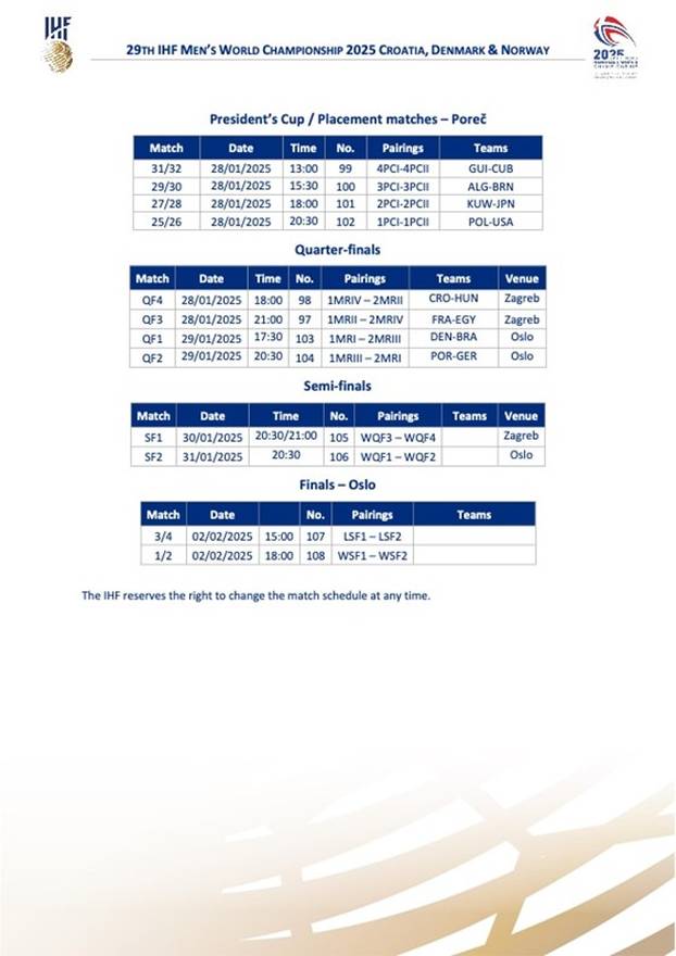 Pisali smo već o promjeni termina kojom je IHF (Svjetski rukometni savez) udovoljio zahtjevima Francuza da igraju četvrtfinale u terminu od 21 sat, umjesto u 18 kako je bilo planiralo. Hrvatsku su protiv Mađarske stavili u raniji termin, a Francuska je igrala u "prime" terminu.