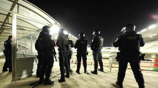 Hajduk se priprema za Jadranski derbi s Rijekom, koji se igra u nedjelju u 18.45, ali u prilično neuobičajenim okolnostima. Naime, igrače na treningu čuva interventna policija. "Bijeli" ne znaju za pobjedu već šest utakmica, a porazi u posljednja dva kola značajno su ih udaljili od borbe za naslov prvaka.