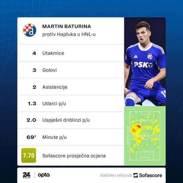 Dva gola zabio je Luka Ivanušec, a Martin Baturina oduševio je nastupom na utakmici i također dao gol. Upravo će ovaj fantazist voditi glavnu riječ 'modrih' danas na Poljudu. Baturina je motor i srce Dinama, a jednim potezom može riješiti utakmicu.