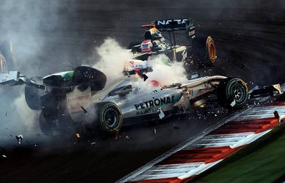 Mercedesov pilot Michael Schumacher nemalo se preplašio pri sudaru s Vitantonijem Liuzzijem.