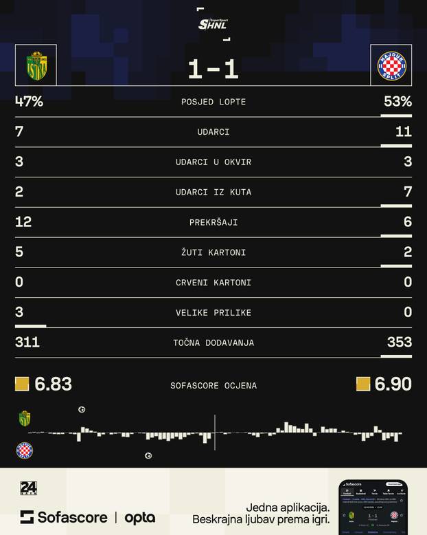 Hajduk se muči u kreaciji, igra bez tečnosti i automatizama, a cjelokupan dojam je kao da je taktika "idemo na silu pa će Livaja već nešto namjestiti". Samo srećom i lošijom formom rivala Hajduk je na čelu prvenstvene ljestvice koju može izgubiti u nedjelju ako Rijeka pobijedi na gostovanju u Osijeku.