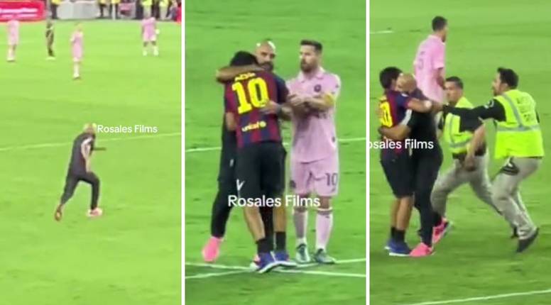 Inter je u derbiju MLS lige slavio 3-1 protiv Los Angelesa, a jedan navijač je usred utakmice utrčao u teren i krenuo prema Messiju. Bio je odjeven u Barcelonin dres s njegovim brojem, htio je dotaknuti nogometno božanstvo, bio je na korak od njega i - bam. Poput Usaina Bolta u najboljim danima protutnjao je nabildani čovjek u crnoj majici pa ga predao zaštitarima koji su kasnili nekoliko sekundi. Riječ je o Messijevom tjelohranitelju koji ga prati u stopu. Čak i tijekom utakmice!
