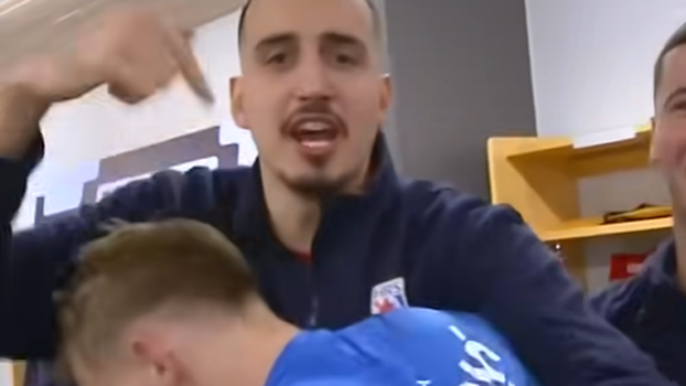 Slavlje nakon pobjede počelo je u svlačionici, a glavni akteri bili su dva Mandića, Matej i David. Naš golman nije bio u rosteru za utakmicu, a David je odigrao sjajno u obrani i zabio tri gola. U videu se vidi kako Matej pokazuje na Davida i prema kamermanu govori da je upravo on igrač utakmice. U videu se vidi još izuzetno raspoloženi Luka Cindrić koji je protivničku mrežu tresao jednom.