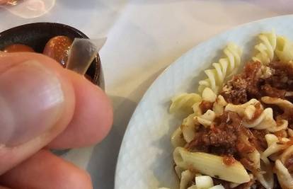 Idemo dalje. Ovo je hrana na rukometnom Euru. Naše dečke u zobenoj kaši u Malmöu je dočekao crv, a u Herningu su jeli bolonjez s komadima plastike. pic.twitter.com/Mv3HiSl9XG