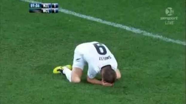 Komentari 9Nogometaš Novog Zelanda Shane Smeltz u posljednjim trenucima utakmice protiv Nove Kaledonije dobio je udarac kopačkom u glavu, ali za suca to nije bio prekršaj