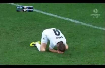 Nogometaš Novog Zelanda Shane Smeltz u posljednjim trenucima utakmice protiv Nove Kaledonije dobio je udarac kopačkom u glavu, ali za suca to nije bio prekršaj