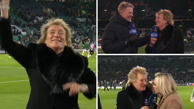 Legendarni glazbenik Rod Stewart (80) nije skrivao dobro raspoloženje tijekom utakmice između Celtica i Bayerna (1-2) u srijedu, priznajući da je popio "par pića" i nasmijavši gledatelje svojim iskrenim komentarima. Njegovo ponašanje i izjave brzo su postale viralne. Prije nego što je utakmica uopće počela, Stewart je u intervjuu za TNT Sports otvoreno govorio o svojoj strasti prema Celticu.