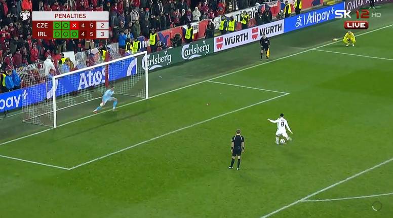 Snovi "dečki u zelenom" o plasmanu na Svjetsko prvenstvo, prvo nakon 2002., činili su se nadohvat ruke. Već nakon 23 minute gosti su u Pragu vodili 2-0. Prvo je Troy Parrott zabio iz penala, a nedugo zatim češki golman Matej Kovar nespretno je poslao loptu u vlastitu mrežu. No domaćini se nisu predavali. Patrik Schick je također iz penala smanjio na 2-1, da bi kapetan Ladislav Krejči u 86. minuti odveo utakmicu u produžetke. Kako ni dodatnih pola sata nije donijelo pobjednika, odluka je pala na penalima, a tamo je Češka slavila 4-3. Junak je postao upravo tragičar Kovar, koji je obranio udarce Finnu Azazu i Alanu Browneu u četvrtoj u petoj seriji iako su Irci nakon tri serije vodili.