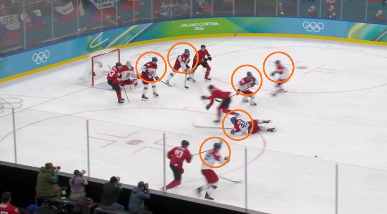 Igralo se osam minuta do kraja treće trećine pri rezultatu 2-2. Nakon blokiranog udarca kanadskog braniča Thomasa Harleyja, Martin Nečas je pokrenuo munjeviti protunapad. Malo prije nego što je Nečas jurio prema golu, s klupe je na led uskočio Ondřej Palat kao šesti igrač Češke. Suci nisu primijetili očito kršenje pravila, a Nečas je povratnom loptom pronašao upravo Palata, koji je svladao golmana Jordana Binningtona i doveo Češku u vodstvo 3-2.