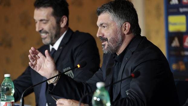 Komentari 17Nakon što je objavio da odlazi iz Hajduka, Gennaro Gattuso predstavljen je kao novi izbornik talijanske nogometne reprezentacije. U rimskom hotelu Parco dei Principi stao je pred medije i službeno preuzeo novu ulogu. Uz njega su bili predsjednik saveza Gabriele Gravima (71) i timski menadžer Gianluigi Buffon (47).