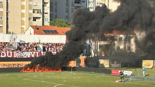 Komentari 39Iako su policijske mjere bile izuzetno stroge, to nije spriječilo prekid utakmice. Baklje su nastavile stizati na teren, a nekoliko ih je pogodilo i reklamne panoe
