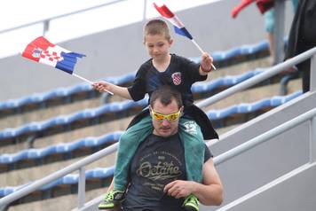 Sve sjedalice na Omiškom stadionu su pune, a povratak Vatrenih u Dalmaciju nakon 2015. godine gledaju i vjerni navijači i s vrha obližnje stijene, ali i s balkona. Navijači su u Omiš doputovali iz svih dijelova Dalmacije, ali na stadionu svoje zastave ponosno pokazuju i navijači iz Slavonije.