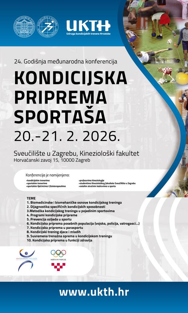 Kineziološki fakultet Sveučilišta u Zagrebu 20. i 21. veljače ugostit će 24. međunarodnu konferenciju Kondicijska priprema sportaša, jedno od najdugovječnijih regionalnih okupljanja stručnjaka iz područja sportskih performansi. Tijekom dva dana u Zagrebu će se okupiti kondicijski treneri, sportski znanstvenici i praktičari iz različitih sportova.
