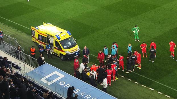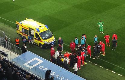 Svi su mu odmah pohitali u pomoć, u prvi mah učinilo se da je ostao bez svijesti. Odmah je u teren ušlo vozilo hitne pomoći koje mu je pružalo pomoć desetak minuta i potom ga odvezlo sa stadiona u svjesnom stanju, micao je rukama. Igrači obiju momčadi otišli su u svlačionicu, nije poznato hoće li se utakmica nastaviti. Pri trenutku prekida rezultat je bio 0-0.