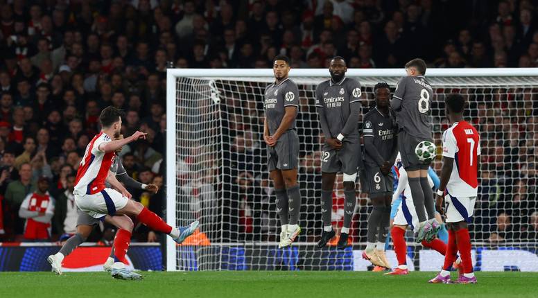 U prvom susretu četvrtfinala nogometne Lige prvaka Arsenal je na stadionu Emirates pobijedio aktualnog europskog prvaka Real Madrid sa 3-0 uz dva sjajna gola Declana Ricea. Dva tjedna nakon što je ženska ekipa Arsenala izborila plasman u polufinale Lige prvaka protiv Real Madrida, stigao je red i na muški dvoboj "topnika" i "kraljevskog kluba".