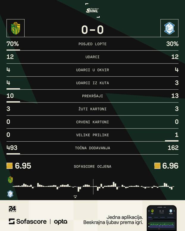 Hoćemo pobjedu, viču domaći navijači, ali od toga nema ipak ništa. Rozić puca iz slobodnjaka, Zelenika brani. Treći uzastopni remi domaćih i drugi uzastopni gostiju koji će definitivno biti zadovoljniji jer osatju četvrti. Istra je propustila veliku priliku preuzeti četvrto mjesto i možda se ušuljati u Europu.