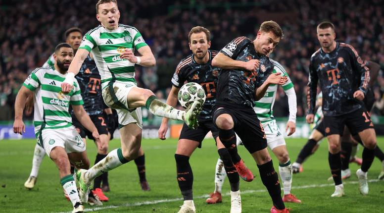 Počelo je šokantno za goste u Glasgowu. Celtic je zabio gol već nakon 26 sekundi. Sjajno je pucao i pogodio Nicolas-Gerrit Kuhn, međutim Adam Idah je bio u zaleđu zasmetavši Manuelu Neueru pa je pogodak poništen. Bavarci su se brzo pribrali i zagospodarili terenom, ali bez konkretne opasnosti sve do same završnice prvog poluvremena kada je Michael Olise sjajno pogodio za 1-0. Bayern je u 49. minuti povećao prednost, nakon ubačaja iz kornera je zabio Harry Kane. Japanac Daizen Maeda je golom u 79. minuti donio tračak nade škotskom prvaku uoči uzvrata u Munchenu 18. veljače. Josip Stanišić nije nastupio za njemački sastav.