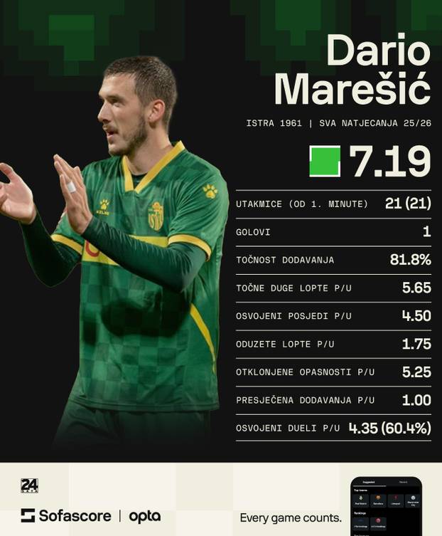 Statistika Darija Marešića u Istri ove sezone.