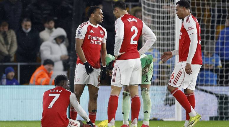 Nogometaši Arsenala, vodeći na ljestvici engleske Premier lige, ostali su bez očekivane pobjede kod Wolverhamptona, taj je dvoboj unaprijed odigranog 31. kola završio 2-2. Wolverhampton je tako zaustavio vodeću momčad na ljestvici. Uz utakmicu više od suparnika Arsenal sada ima pet bodova više od Manchester Cityja i osam više od Aston Ville.