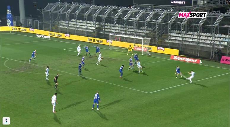 Slaven je poveo u drugoj minuti golom Nestorovskog, a u prvoj minuti nadoknade je Majstorović dobio direktan crveni karton. Uspjela je Rijeka izjednačiti golom Ndocktya u 66. minuti, ali Jagušić je goste vratio u vodstvo u 82. A onda - bomba! Tiago Dantas pogodio je vanjskim dijelom kopačke s ruba kaznenog prostora iskosa i podsjetio na najbolje poteze Luke Modrića i Ricarda Quaresme kojima je vanjska zaštitni dio.