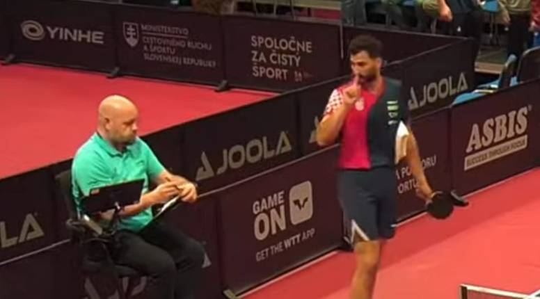 Hrvatski stolnotenisač smatrao je da je njemu pripadao poen i ušao je u raspravu sa sucima, a jednog od njih je pitao poznaje li osnove fizike. Završio je u raspravi i s protivnikom