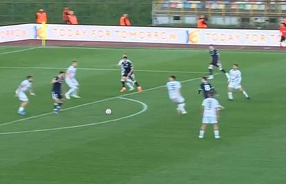 Sedmica 'modrih' odigrala je dodavanje za Zajca, koji je petom ostavio loptu za Belju. On je na isti način vratio loptu Zajcu, koji je nastavio kretnju prema kaznenom prostoru, a zatim se lijepo namjestio te plasirao loptu u mrežu nemoćnog Šahinovića.