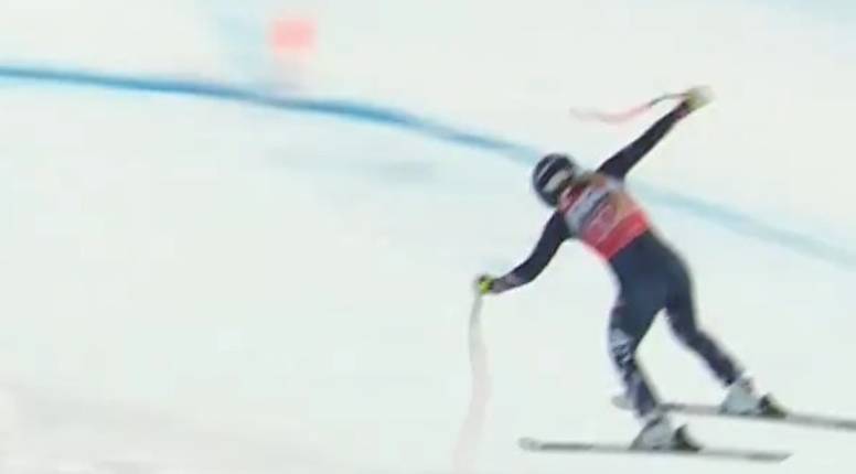 Vonn je startala šesta na spustu u Cras-Montani, ali nije bila jedina koja nije završila utrku. Pale su još dvije skijašice prije nje, Nina Ortlieb i Marte Monsen. Amerikanka je završila u zaštitnoj mreži pored staze, a interveniralo je i osoblje.
