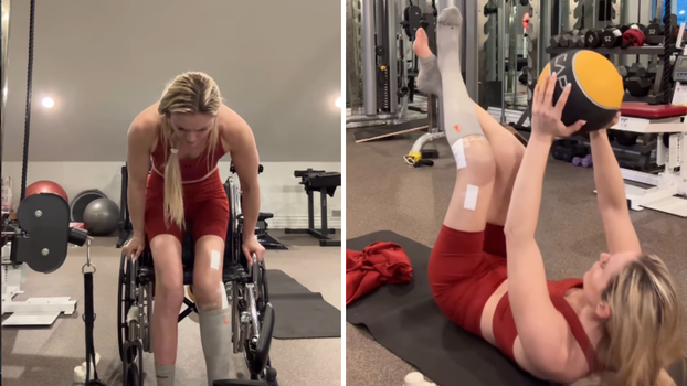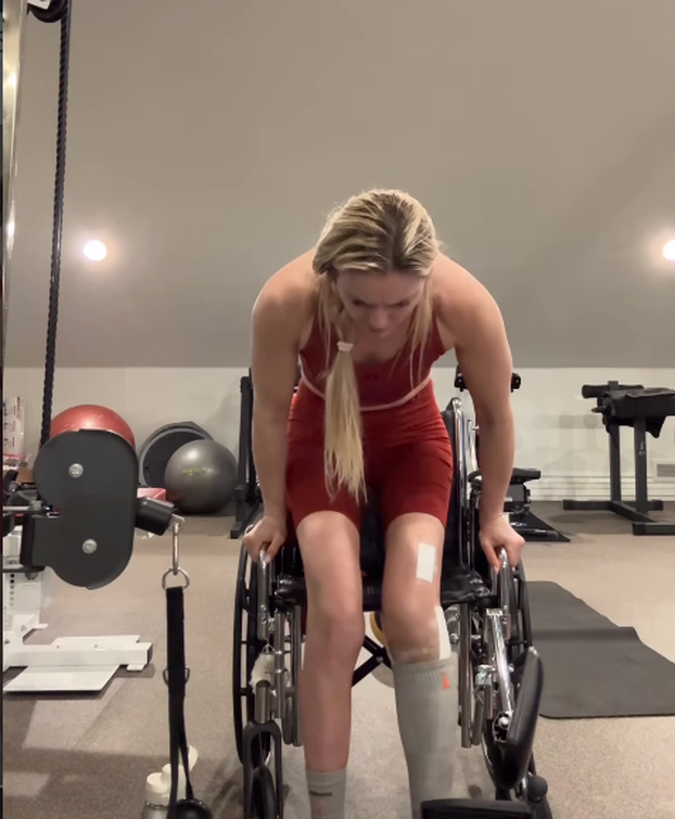 Na snimci se vidi kako Vonn uz pomoć sprave ustaje iz invalidskih kolica i, s fiksiranom lijevom nogom, započinje s prilagođenim vježbama. Iako vidno iscrpljena i s bolnom grimasom na licu, olimpijska pobjednica izvodi vježbe za gornji dio tijela, radi na jačanju trupa i čak pokušava lagano aktivirati mišiće ozlijeđene noge.