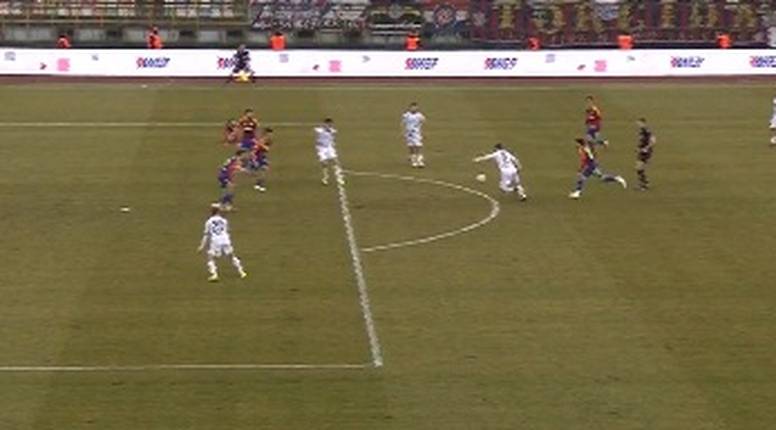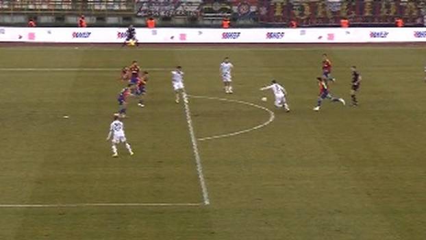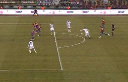 Čuić je ukrao loptu u opasnoj zoni i pokušao ubaciti. Lopta se odbijala po rubu kaznenog prostora i stigla do Poze koji je iz prve opalio i zabio sjajan gol. Ništa nije mogao Silić i domaćini su poveli. Glavni sudac je provjeravao situaciju, ali na kraju je gol priznat.