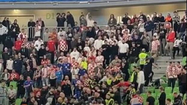 Naime, dio navijača Hrvatske bio je nezadovoljan sudačkim odlukama na utakmici i odlučio bacati čaše na parket, zbog čega je utakmica prekinuta na nekoliko minuta. Morala je reagirati i interventna policija te ukloniti problematične pojedince s tribina nakon čega je dvoboj nastavljen. Sada se pojavio i videozapis gužve iz drugog kuta.